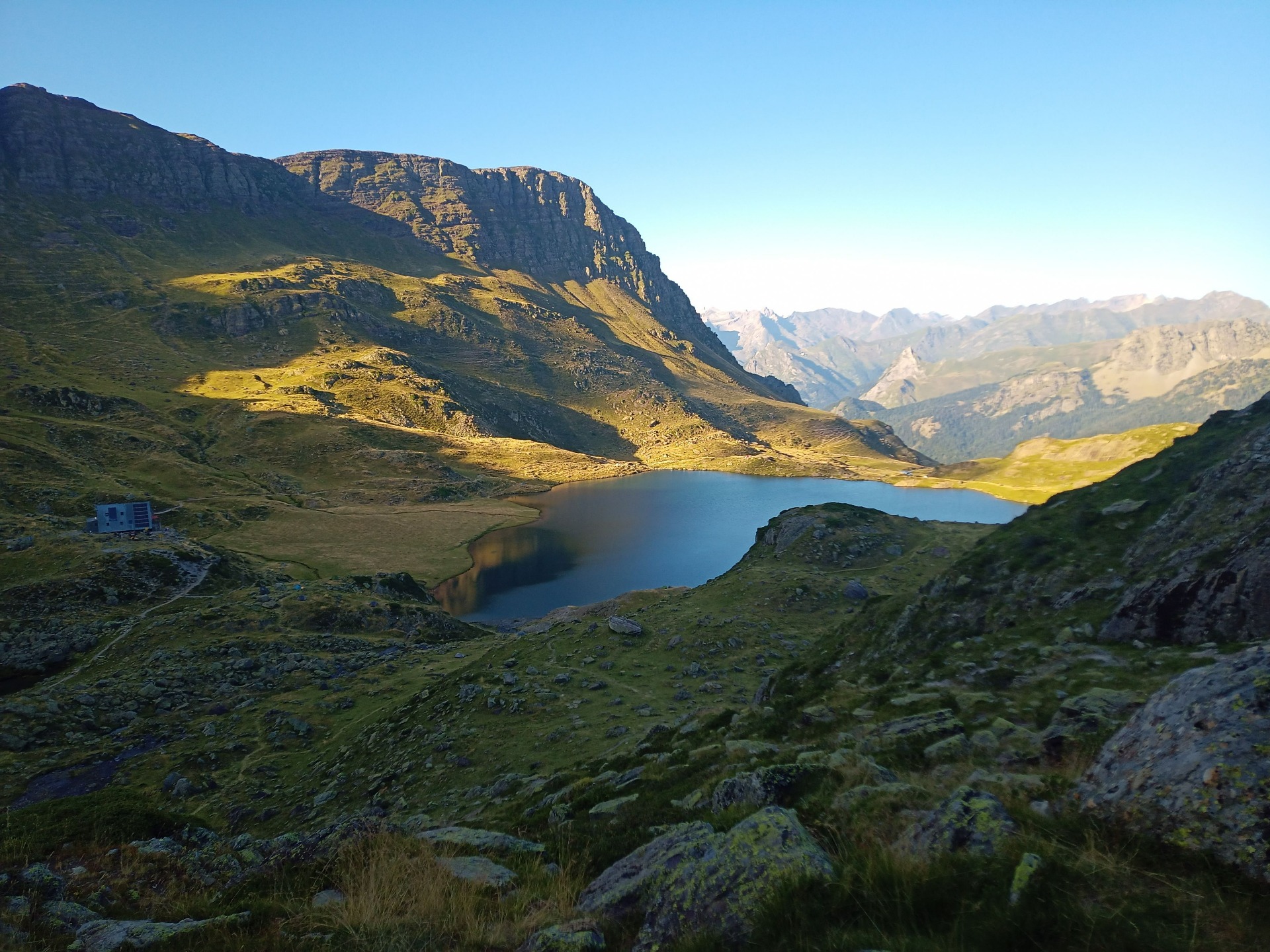 Třetí trek: další průnik na francouzské území. Astún horní konec lanovky – refuge d´Ayous u jezera Lac Gentau – ubytko pod převisem (mimo dosah kravích kopýtek)– šmajdání kolem jezer – Astún, bus do Canfranc Pueblo a nocleh nad řekou Aragón. 17 km, 685 nastoupaných výškových m, jezera, koně, krávy, slunce, mlha, déšť, úplněk.